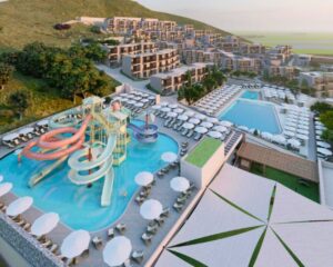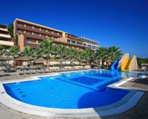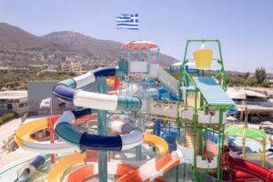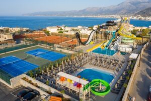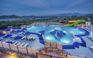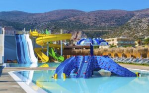 Suure veepargiga hotell Kreetal. Täiskasvanutele on 7 liumäge ja lastele samuti 7 liumäge. Väga suur territoorium. Ainus miinus on see, et kuna asub mäenõlval, siis territorriumil on palju treppe. Toiltustus kõik hinnas. Kiidetakse hotelli toitlustust.