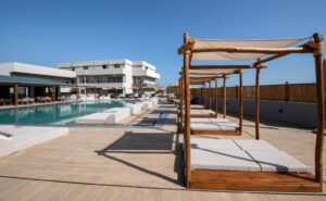 Mare Village 4* on stiilne linnahotell Georgioupolises, paiknedes kõigest ~100–300 m kaugusel liivarannast ning samas vaid 5 min jalutust kaugusel kohvikutest, poodidest ja ühistranspordi peatusest – ideaalne kombinatsioon linnamelust ja randapuhkusest